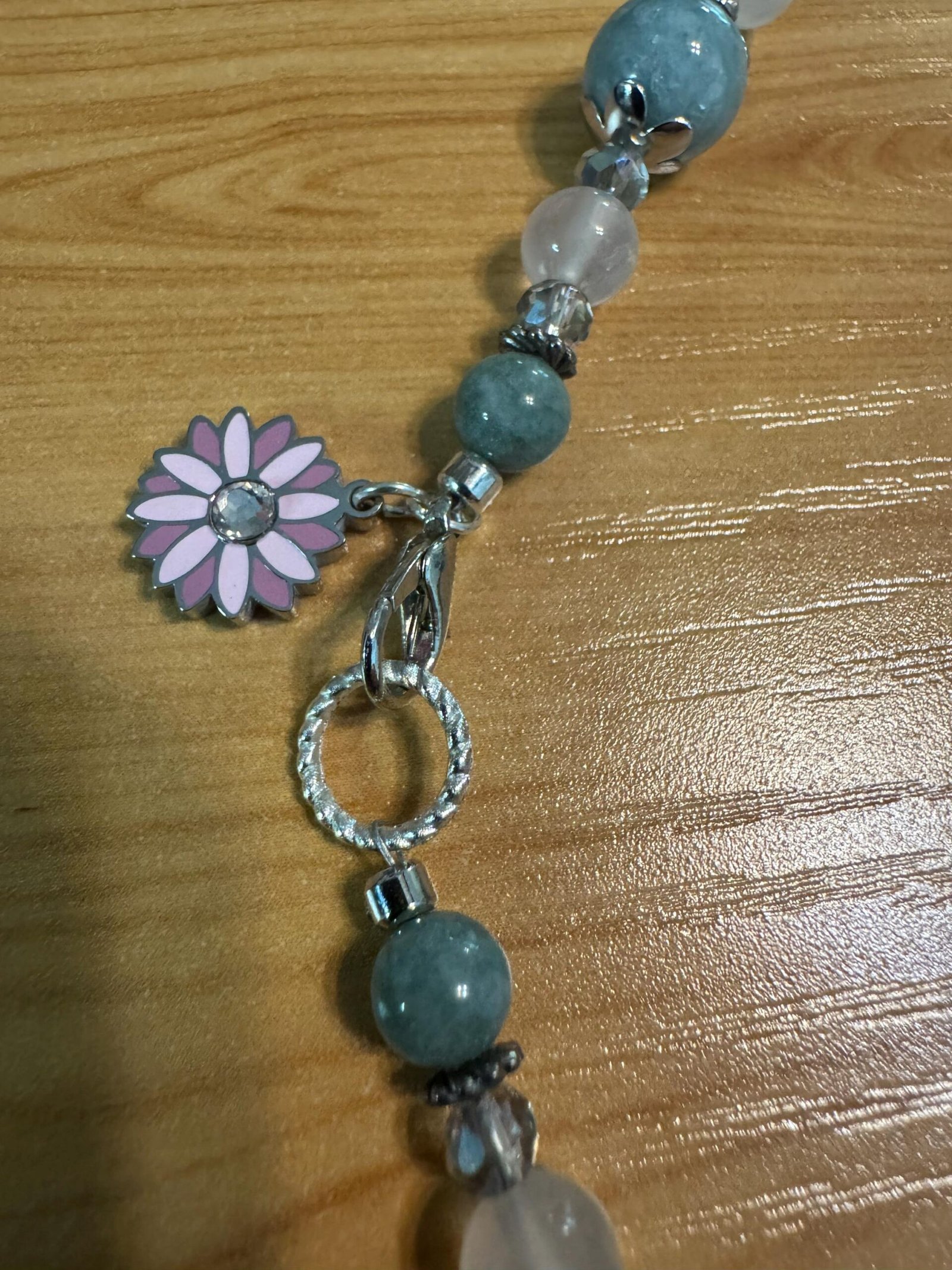 • Stones: Moss Aquamarine (pendant), Blue-Green Aventurine, Quartz
