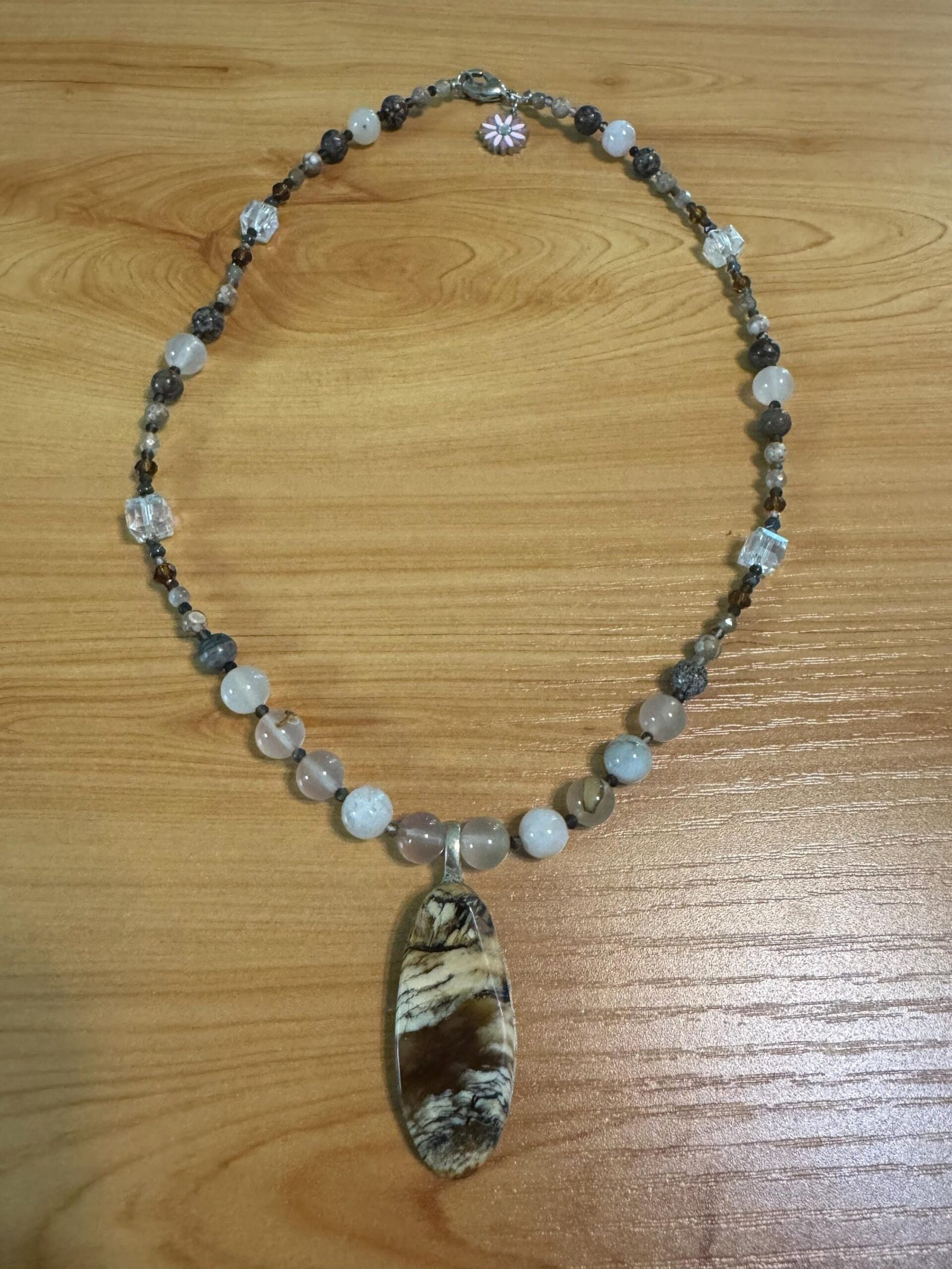 • Stones: Petrified Wood (pendant), Agate, Smoky Quartz, Crystal, Jasper